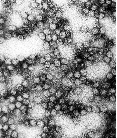 La fièvre jaune sera finalement isolée en 1927 par Adrian Stokes, un médecin anglo-irlandais, mais ce n’est que dans les années 1930 avec l’apparition des microscopes électroniques qu’on a pu l’observer[16] :
