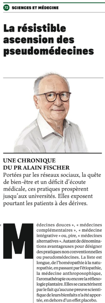 On ne peut pas être de tous les combats. Alain Fischer a choisi le sien, qui consiste prêcher, encore et encore, contre ce qui fait de l’ombre à son fonds de commerce, sa réputation et sa légitimité sociale : les médecines non-conventionnelles.