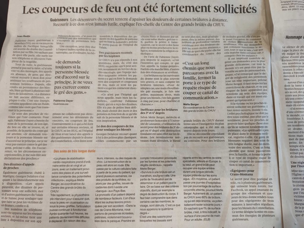 Faire appel à eux après l’incendie meurtrier de Crans-Montana paraissait donc tout à fait logique, comme en témoigne cette coupure de presse datée du 4 janvier dernier :