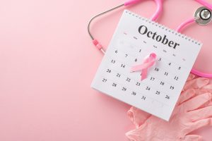 Breast,Cancer,Screening,Date.,Top-view,Perspective,Of,Pink,Surgical,Gloves,